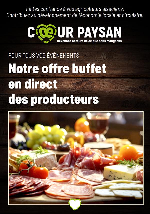 Un buffet avec du goût et de la fraîcheur, en direct de plus de 75 fermes alsaciennes! C’est ce que proposent les producteurs de Cœur Paysan Colmar et Cœur Paysan Mulhouse.